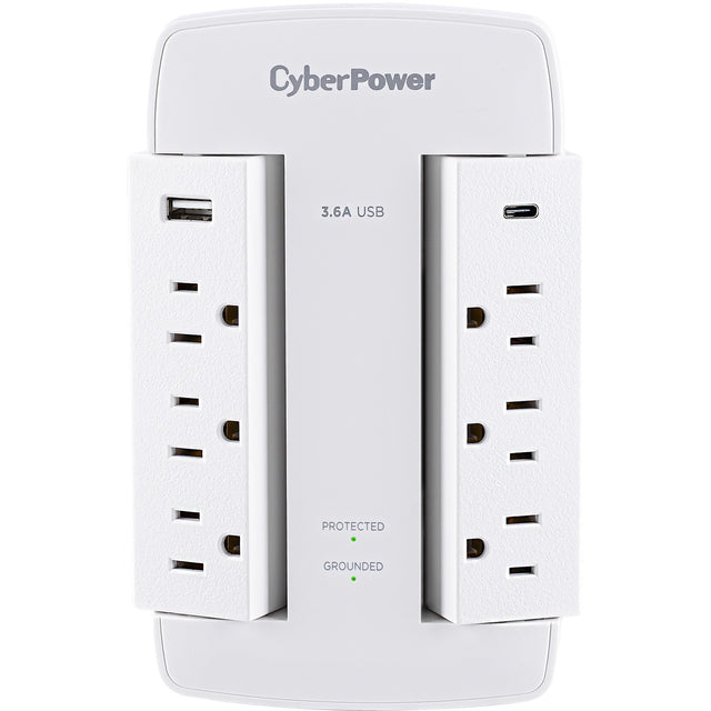 CyberPower CSP600WSURC5 Professional 6 - Outlet Surge with 900 J - NEMA 5-15P, Wall Tap, 2 - 3.6 Amps (Shared) USB, Lifetime Warranty - CSP600WSURC5