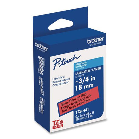 BROTHER TZe Standard Adhesive Laminated Labeling Tape, 0.7" x 26.2 ft, Black on Red - TZE441