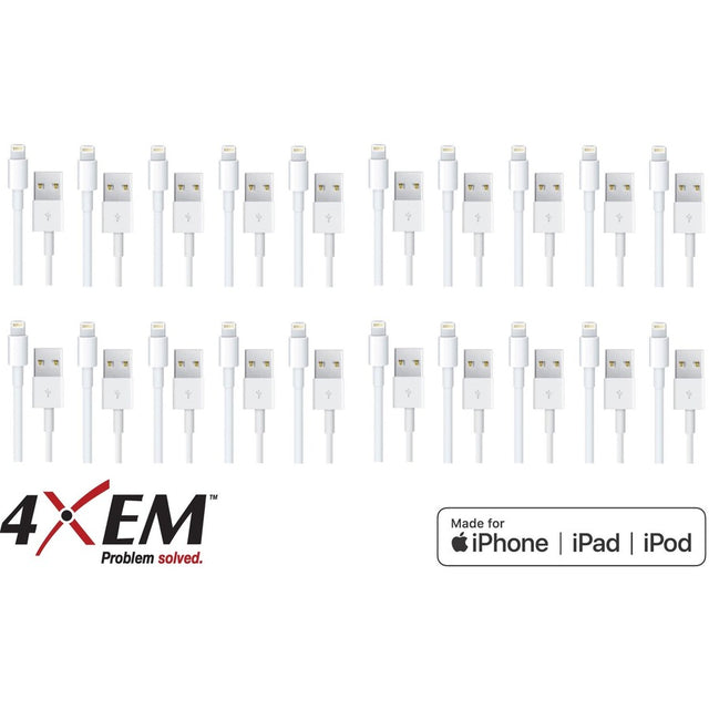 4XEM 20 Pack 3ft 1m Lightning Cable Compatible with Apple iPhone/iPad/iPod - 3.28 ft Lightning/USB Data Transfer Cable for iPhone, iPad, iPod, Computer, Power Adapter, Wall Outlet, iPod nano, iPad min... - 4XLIGHTNING20PK