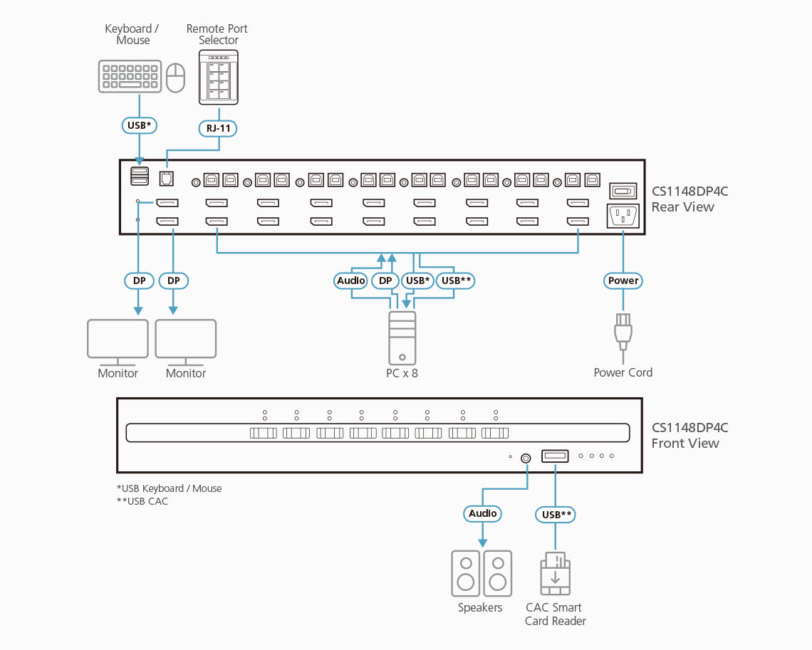ATEN 8-Port USB DisplayPort Dual Display Secure KVM Switch with CAC (PSD PP v4.0 Compliant)
