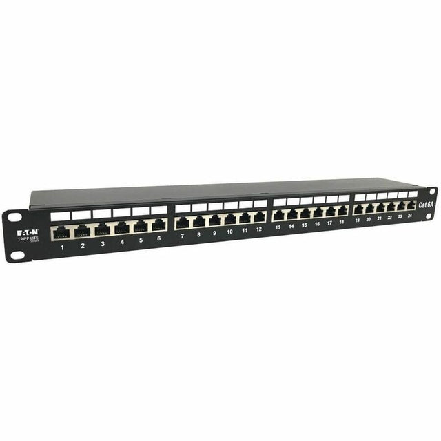 Tripp Lite 24-Port Cat6a Shielded Patch Panel - 10 Gbps, STP, 110 Punch Down, RJ45, 1U, TAA - 24 Port(s) - 24 x RJ-45 - 1U High - Black - TAA Compliant - N252-024-6A-SH
