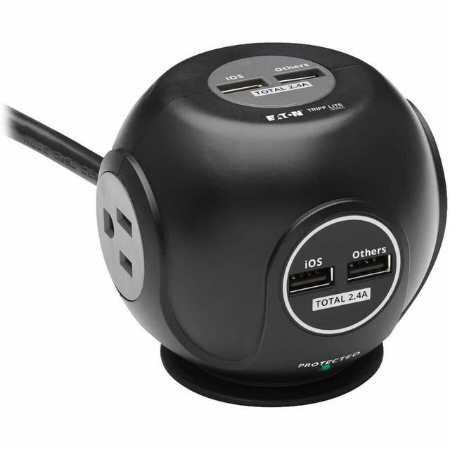 Tripp Lite Surge Protector with 3-Outlets & 4 USB Ports Spherical Black 6ft Cord - 3 x NEMA 5-15R, 4 x USB - 1800 VA - 540 J - 120 V AC Input - TLP36USB